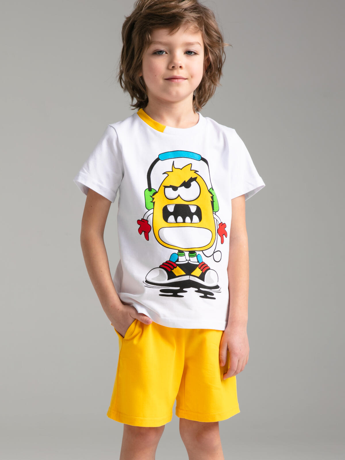 Комплект: футболка и шорты из качественного эластичного и приятного на ощупь трикотажа. Эластичный пояс со шнурком. Посадка regular fit – классический крой. Высокое содержание хлопка 95%. Благодаря наличию эластана в составе ткани изделие держит форму и меньше мнется.