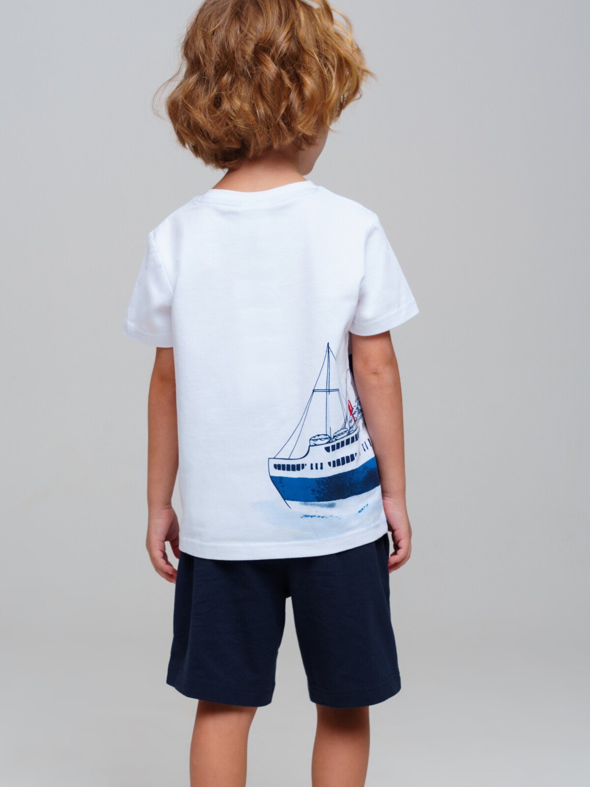 Костюм детский для мальчика. Футболка и шорты из эластичного и приятного на ощупь трикотажа. Шорты на резинке со шнурком. Шорты с карманами в боковых швах. Высокое содержание хлопка 95%. Благодаря наличию эластана в составе ткани изделие держит форму и меньше мнется. Модель выполнена из качественного и приятного на ощупь трикотажа.