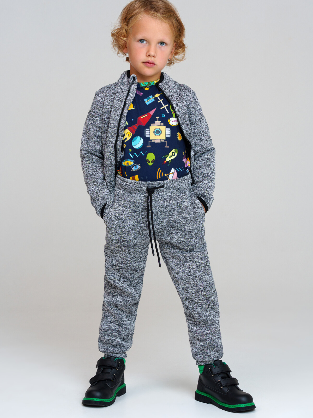 Комплект детский для мальчика: толстовка, брюки из флиса. Линия SPORT – для повседневной одежды второго слоя в холодное время года. Плотность флиса 220 г/м2. Воротник-стойка. Манжеты с эластичной окантовкой. Клапан для защиты подбородка при застегивании молнии. Комфорт посадки обеспечен за счет резинки со шнурком. Флисовая поддева идеально подходит под зимний мембранный костюм или комбинезон, в качестве второго слоя в трехслойной концепции одежды для зимы. Основная функция поддевы из флиса – удерживать тепло и передавать пар от первого слоя – термобелья, оставаясь сухим.