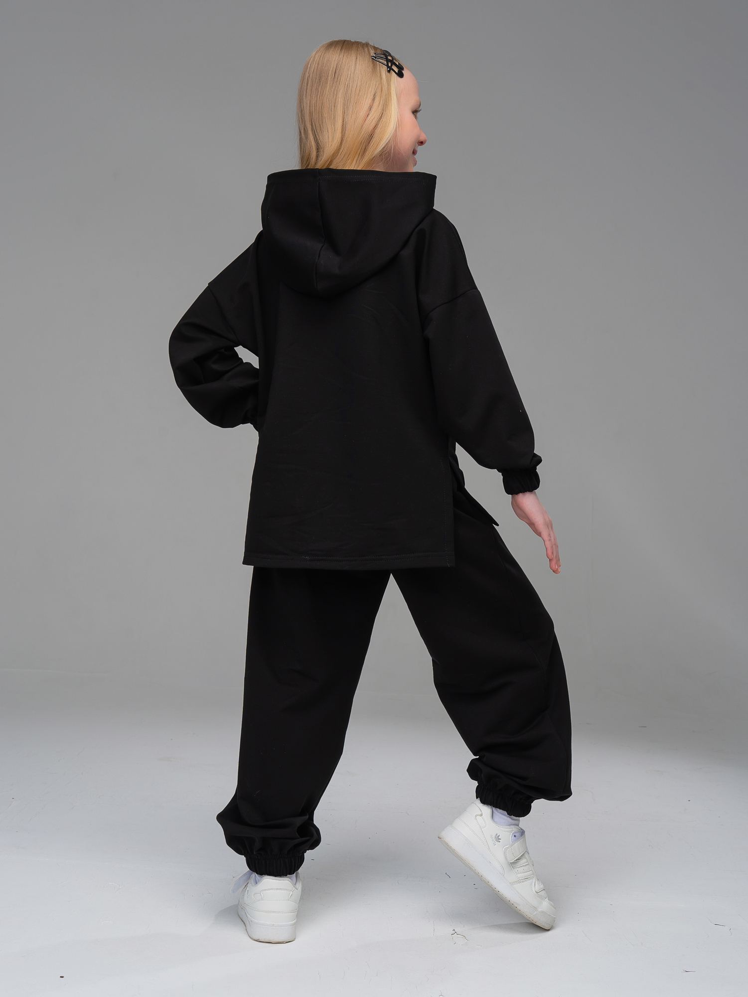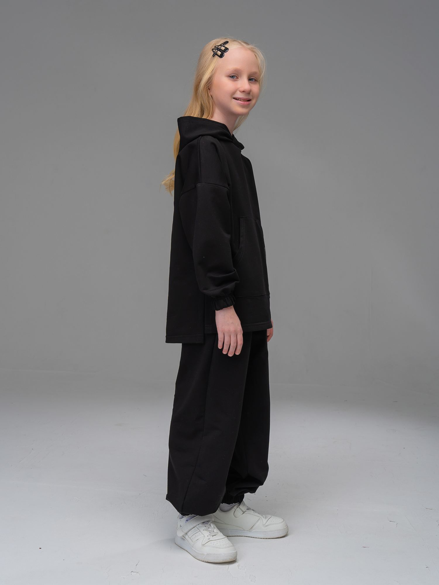Костюм детский летний из футера черного цвета от российского производителя "Looklie". Спортивный костюм выполнен из дышащего хлопкового футера 2-х нитки премиального качества Пенье, с содержанием хлопка более 95%. Детский костюм состоит из: толстовки с длинными рукавами и капюшоном и свободных брюк. На брюках имеются удобные карманы в боковых швах, а пояс штанов на мягкой эластичной резинке, которая не будет передавливать животик ребенка. Низ детских брюк собран на резинку. Толстовка свободного силуэта с объемными рукавами , низ рукавов на резинке создает ощущение комфорта и легкости. Кофта для девочки имее впереди большой карман-кенгуру, что делает её удобной в носке .Резинка на рукавах обеспечивают надежное прилегание и защищают от проникновения ветра. Ткань костюма не садится после стирки, не покрывается катышками. В нашем костюме Ваш ребенок будет выглядеть стильно, он позволит ему проявить свою энергию и самовыражение. Изделие выполнено из трикотажа премиального качества - ПЕНЬЕ, с содержанием хлопка более 92%