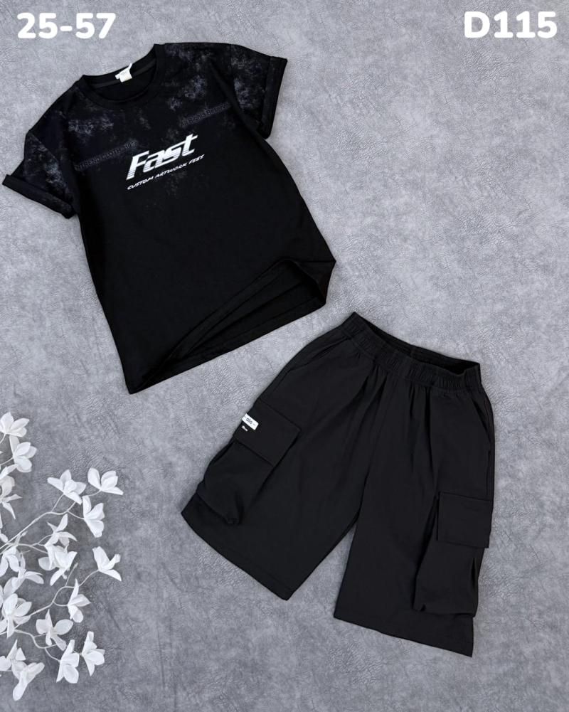 Комплект состоит из шорт и футболки, что создаёт комфорт в повседневной носке.