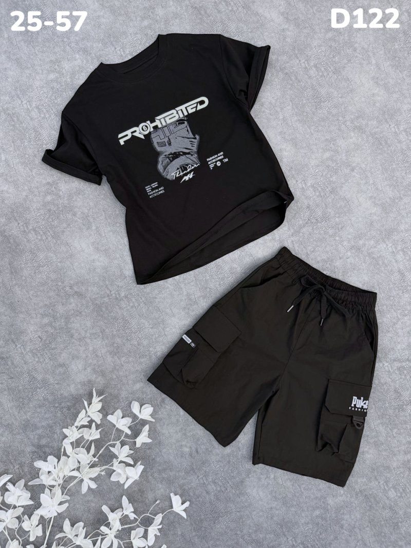 Комплект состоит из шорт и футболки, что создаёт комфорт в повседневной носке.