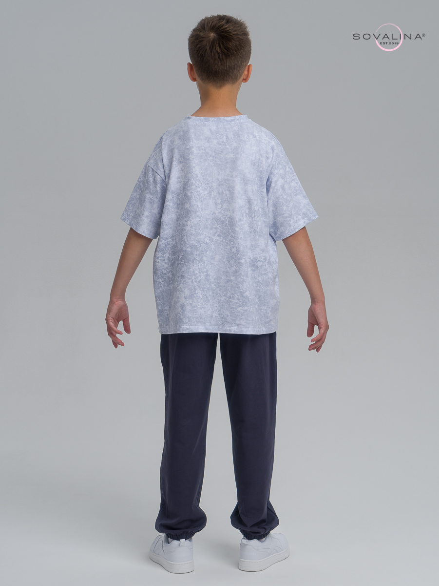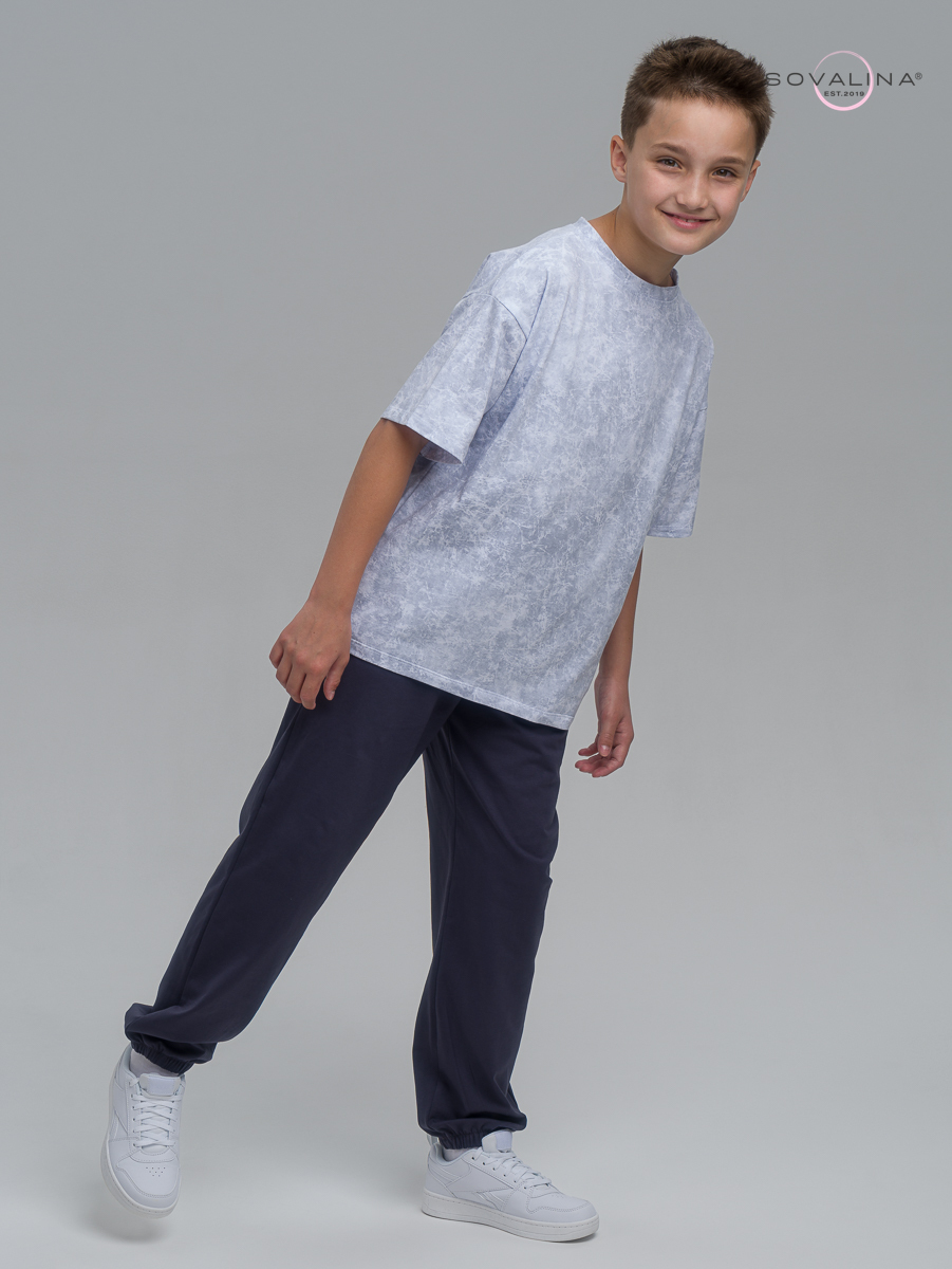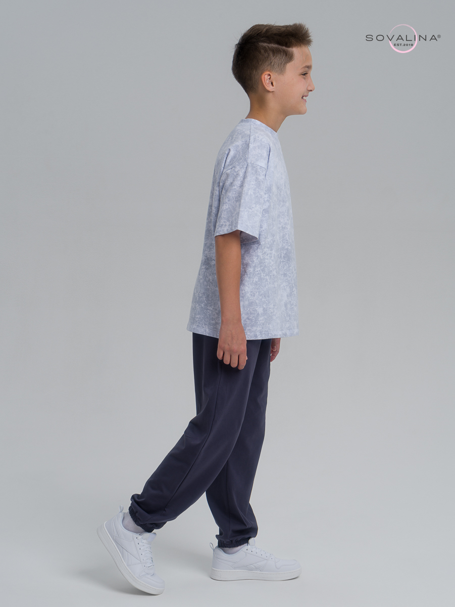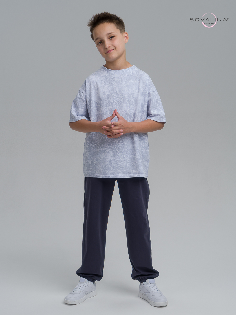 Детский спортивный костюм двойка состоит из широкой футболки оверсайз и брюк на резинке с карманами.