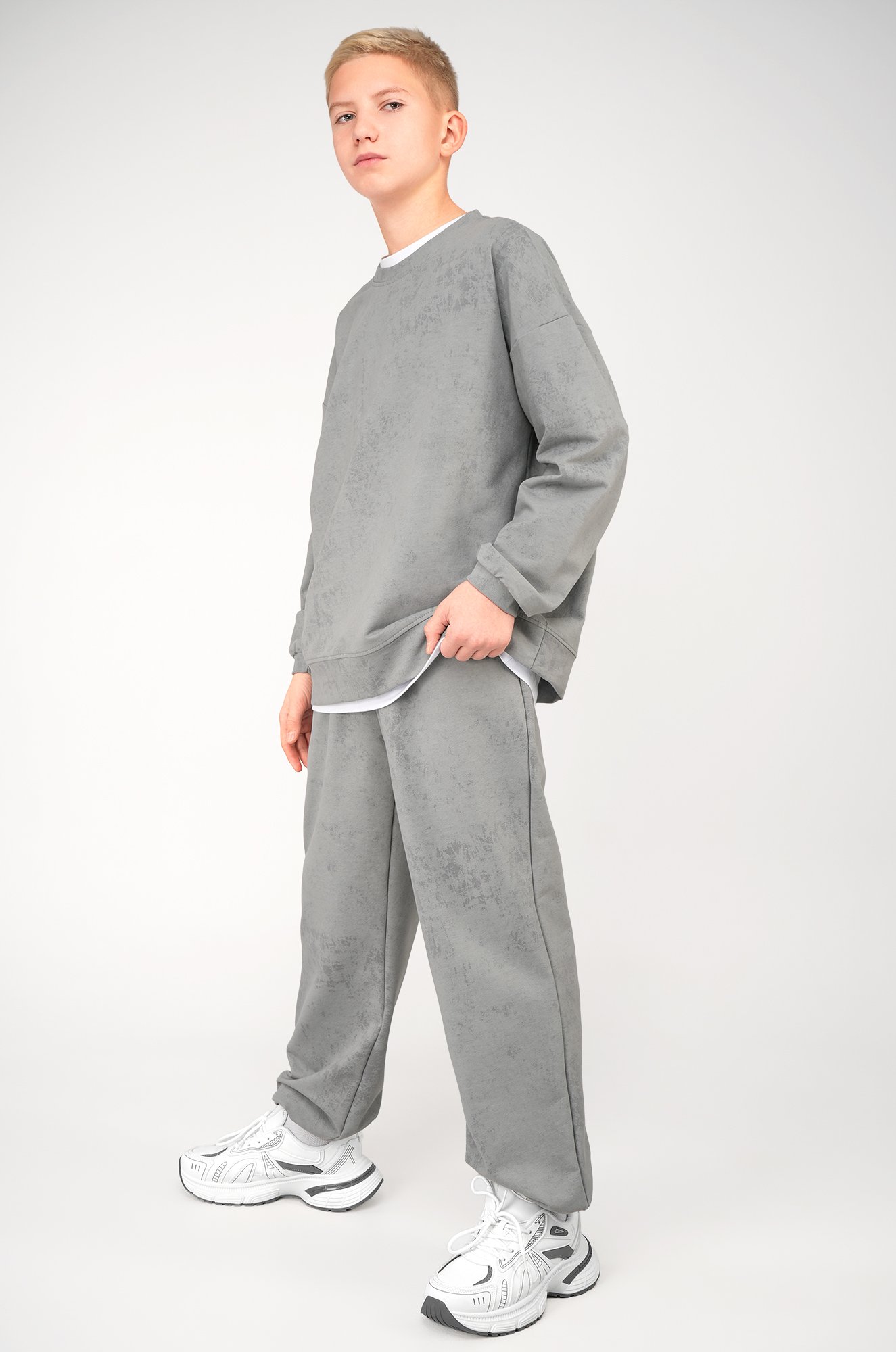 Стильный детский костюм для мальчика подростка вдохновляет на активность. Мягкая толстовка оверсайз и широкие брюки на манжете придают полную свободу движений.