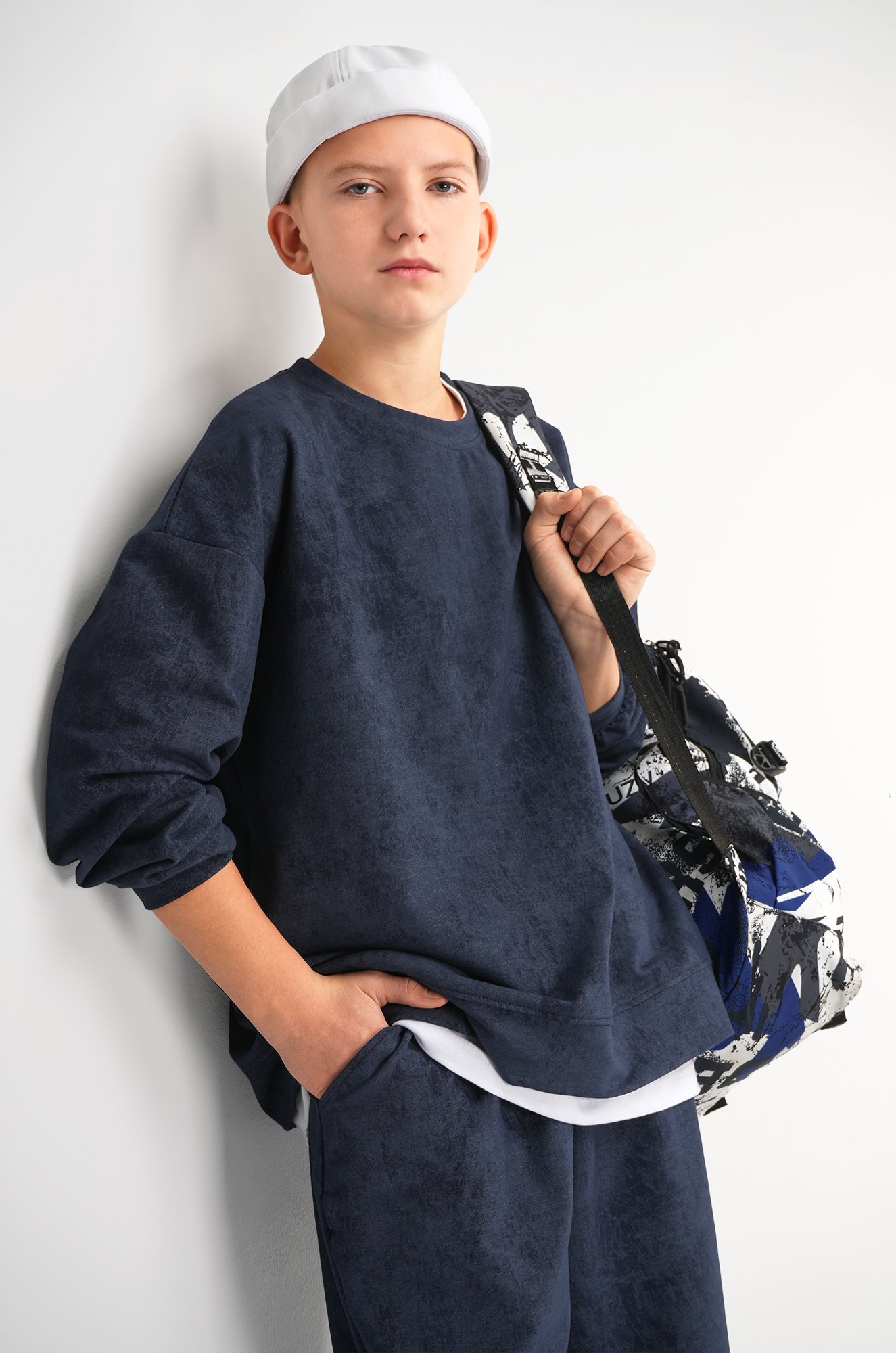 Стильный детский костюм для мальчика подростка вдохновляет на активность. Мягкая толстовка оверсайз и широкие брюки на манжете придают полную свободу движений.