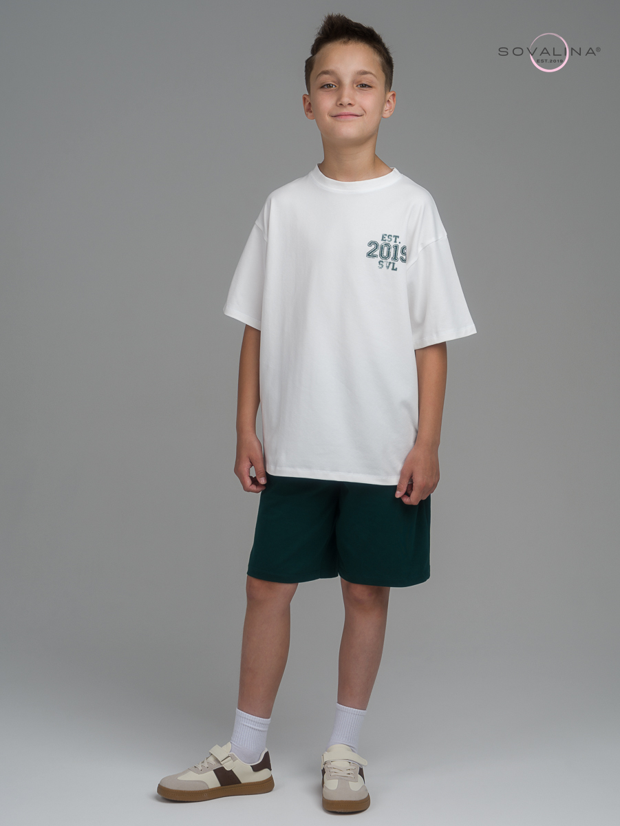 Летний хлопковый комплект для мальчиков подростков бренда SOVAlina. Детский спортивный костюмчик двойка состоит из легкой и широкой футболки. Она выполнена из тонкого и прочного трикотажа, что делает ее идеальной на каждый день для встреч с друзьями, путешествий, на дачу. Модный комплект также включает шорты на резинке и с карманами, имеют комфортную посадку для активного отдыха, спортивных игр и мероприятий.  Свободная футболка оверсайз изготовлена из хлопка и обеспечивает максимальный комфорт и свободу движений, подойдет и для дома, так как это дышащий материал. Этот тонкий и легкий комплект также подходит как форма для тренировок, физкультуры. Выполнен из высококачественных материалов, чтобы обеспечить долговечность и комфорт.