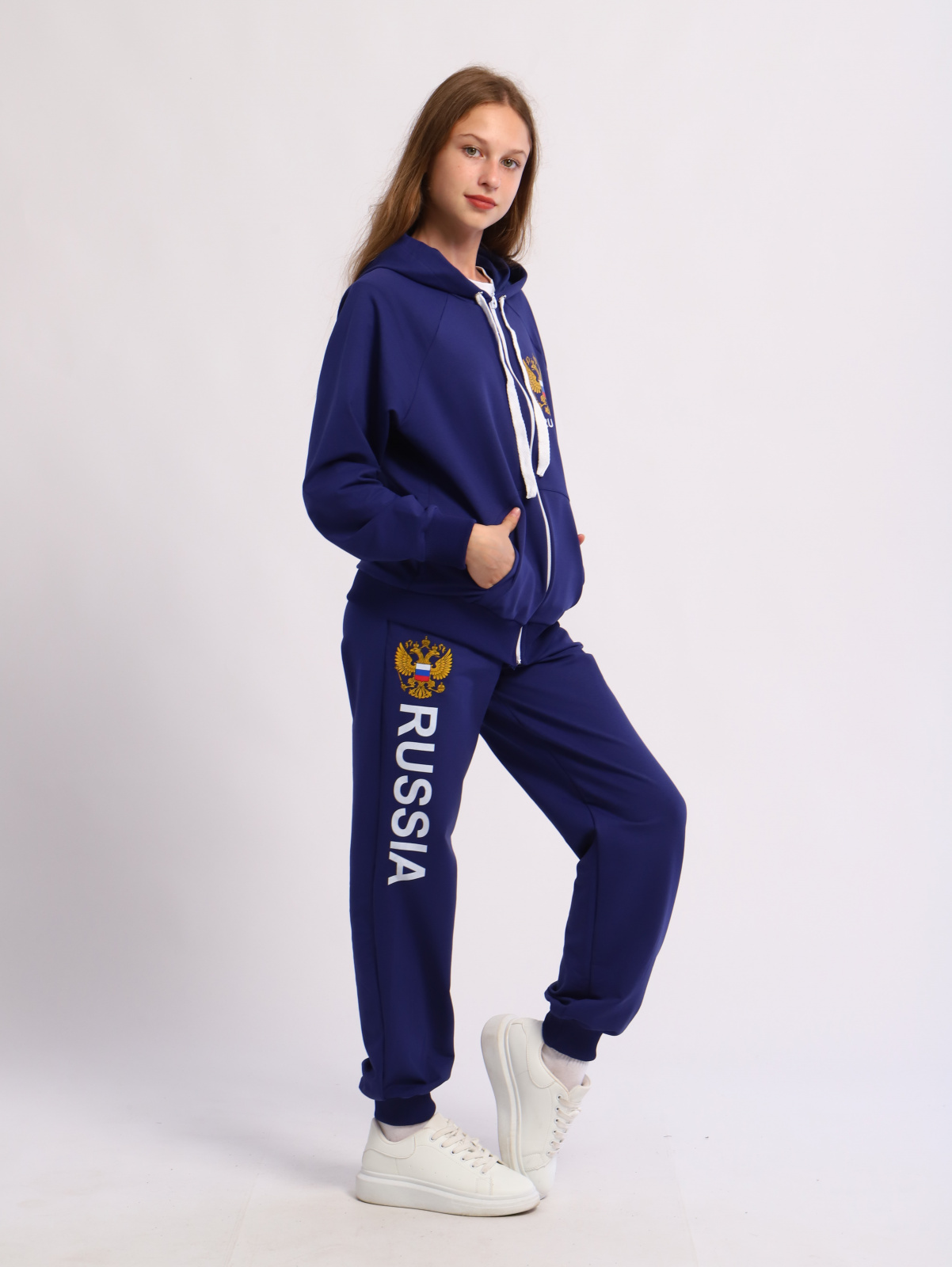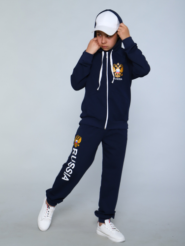 Детский физкультурный костюм с гербом сшит для для мальчиков и девочек подростков. Куртка спортивного костюма двойки на молнии, с капюшоном, на груди герб России (РФ). Брюки джоггеры с манжетами внизу, с поясом на резинке и шнурком для фиксации на талии, на правой ноге крупная надпись "RUSSIA". Комплект сшит из тонкого без начеса трикотажа для весны и лета, прогулок и походов, пикников. Для активного отдыха и занятий спортом на свежем воздухе. Отличается подростковый комплект-двойка своим стильным и в то же время сдержанным дизайном и удобством. Посадка штанишек для физкультуры средняя, удобная. Модная и функциональная олимпийка с большим объемным капюшоном, может использоваться в качестве отдельного верха на лето . Рукава молодежного спортивного костюма - реглан. Спереди карманы "Кенгуру". Костюм детский спортивный в темной серой черной гамме прекрасно подойдет для активных занятий физкультурой в школе и игр, для путешествий и туристических походов. Для командных игр и тренировок, на летний и весенний сезон, теплую осень. Повседневно комплект с худи с капюшоном для юношей и девушек может быть использован тоже. Натуральный состав - это еще одно преимущество комплекта одежды синего цвета , ведь он гарантирует комфорт и практичность. Цветной школьный тренировочный комплект для занятий физкультурой в спортивном зале - практичный, немаркий. Подойдет трикотажный костюм и высоким школьникам. Если Ваш ребенок активный, любит играть в "войнушки", участвует в спортивном ориентировании, любит походы, составляет компанию папе на рыбалке, то этот костюм будет ему замечательным подарком!