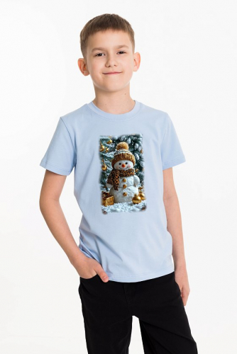 Костюм для мальчика пошит из хлопка комбинированных расцветок, состоит из футболки и брюк, футболка с длинным рукавом и принтом спереди, низ рукавов и горловина обработаны бейкой, брюки без боковых швов на резине по поясу.
