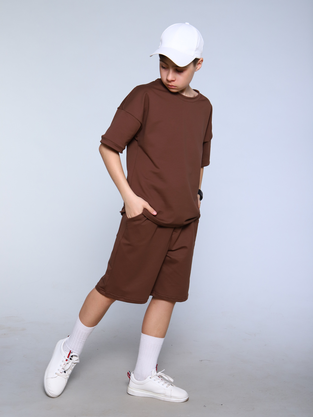 Модный монохромный комплект для мальчиков-подростков остается на пике мужской и подростковой моды. Беспроигрышное сочетание для лета – стильные свободные шорты на резинке с комфортной свободной футболкой oversize. Подростковый комплект шорты + футболка сшит из приятной натуральной ткани с петельчатым оборотом футер с добавлением лайкры. Однотонный комплект очень удобный, прочный, но при этом легкий и воздухопроницаемый. Oversize-футболка свободного кроя со спущенной линией плеча универсальна, подойдёт мальчишкам и парням любого возраста. Повседневный летний костюм хорошо подойдет для прогулок, отдыха, детского лагеря, санатория, дома, туризма, походов, путешествий, занятий спортом и фитнесом, в подарок современному подростку. Футболка и шорты в комплекте могут использоваться как самостоятельные изделия и собирать разные интересные сочетания в гардеробе требовательного к моде мальчика-подростка.