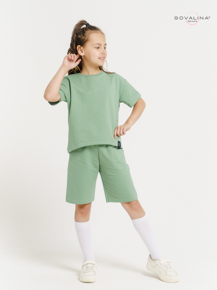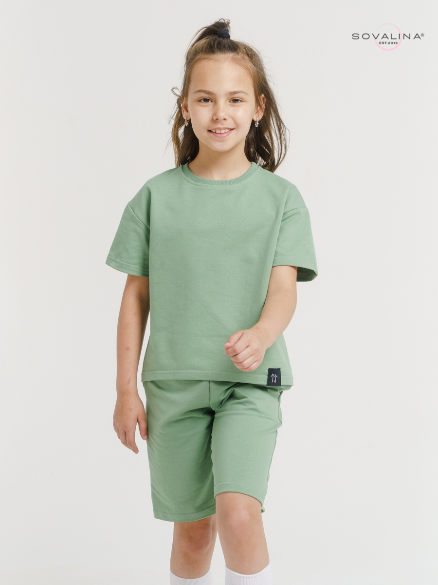Костюм  российского бренда SOVAlina выполнен из футера высшего качества,  хлопок с добавлением небольшого количества лайкры для повышения износостойкости и эластичности ткани.