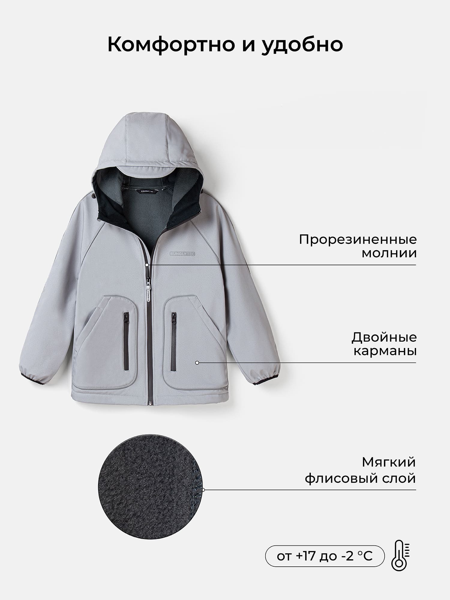 Флисовый внутренний слой эффективно отводит лишнюю влагу и поддерживает оптимальную температуру тела.