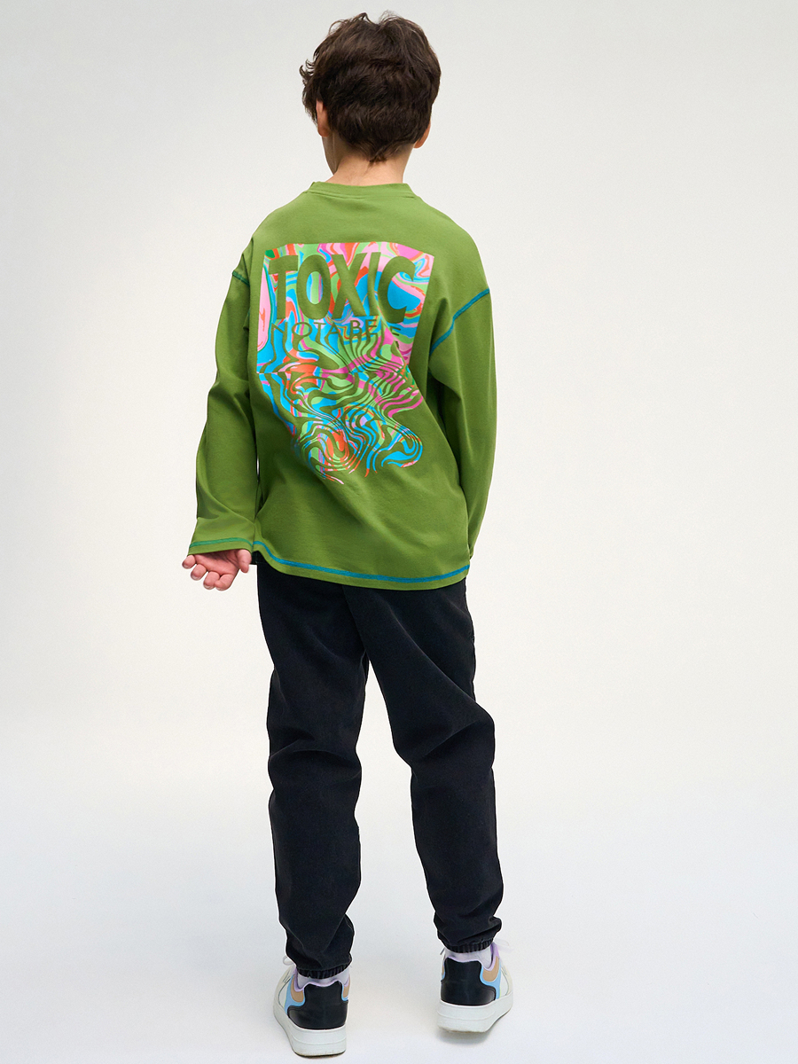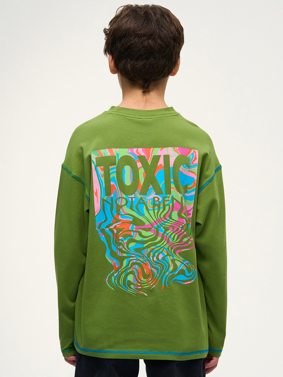 Лонгслив для мальчика – идеальный выбор для создания стильного и удобного образа для подростка. Подходит как базовый вариант на каждый день, для прогулок и спорта. Лонгслив является универсальным вариантом для любого случая.Лонгслив без горла изготовлен из хлопка, очень приятная ткань к телу и мягкая на ощупь.Лонгслив из трикотажа средней плотности с ярким принтом на спине.