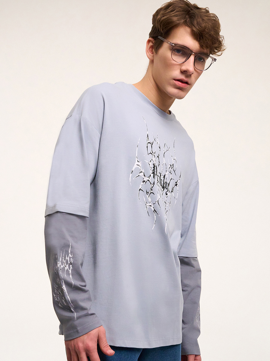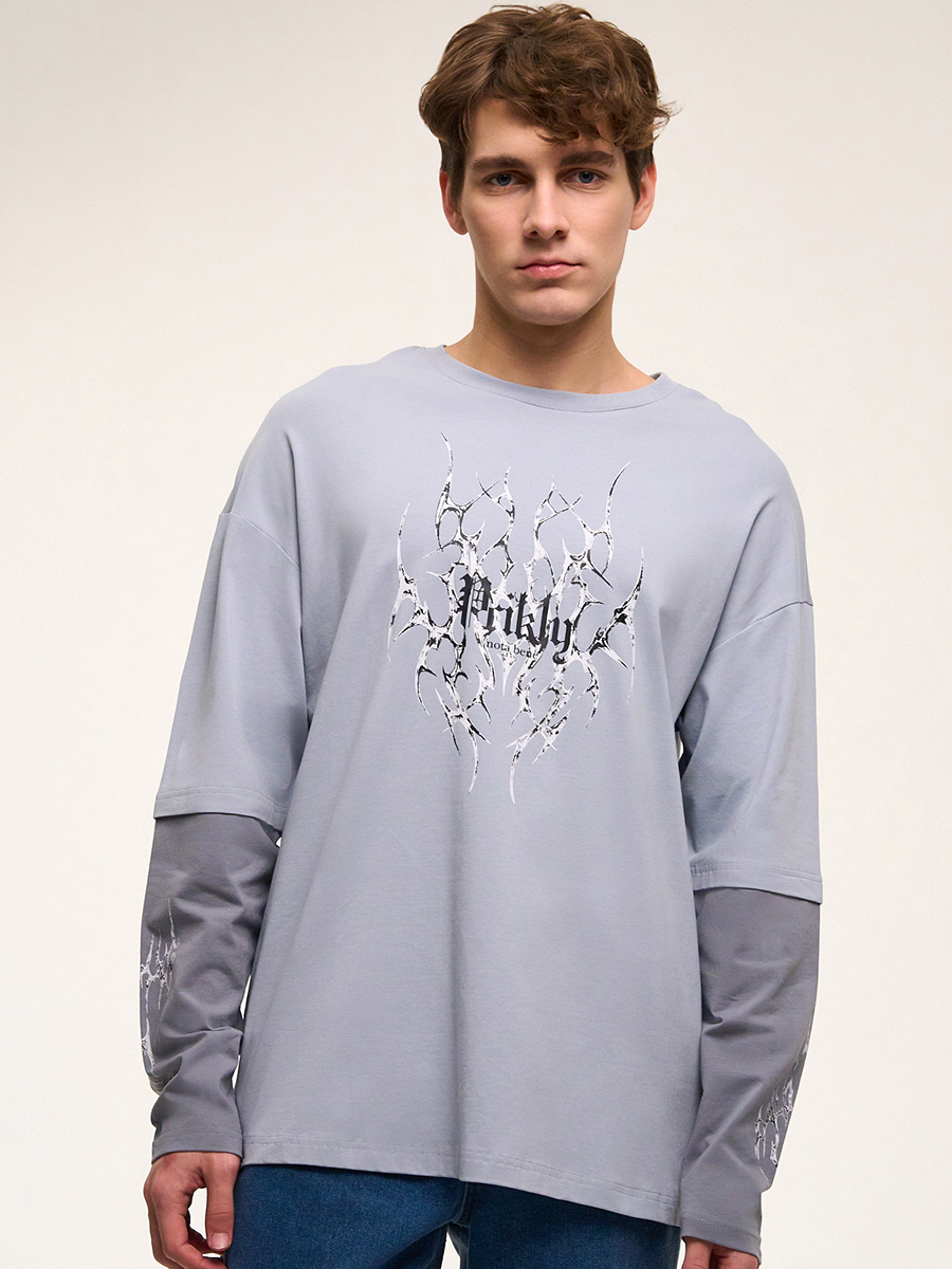 Лонгслив для мальчика – идеальный выбор для создания стильного и удобного образа для подростка. Подходит как базовый вариант на каждый день, для прогулок и спорта. Лонгслив является универсальным вариантом для любого случая.Лонгслив из трикотажа средней плотности с двойным рукавом. Стильный принт спереди и на рукавах. светло-серый