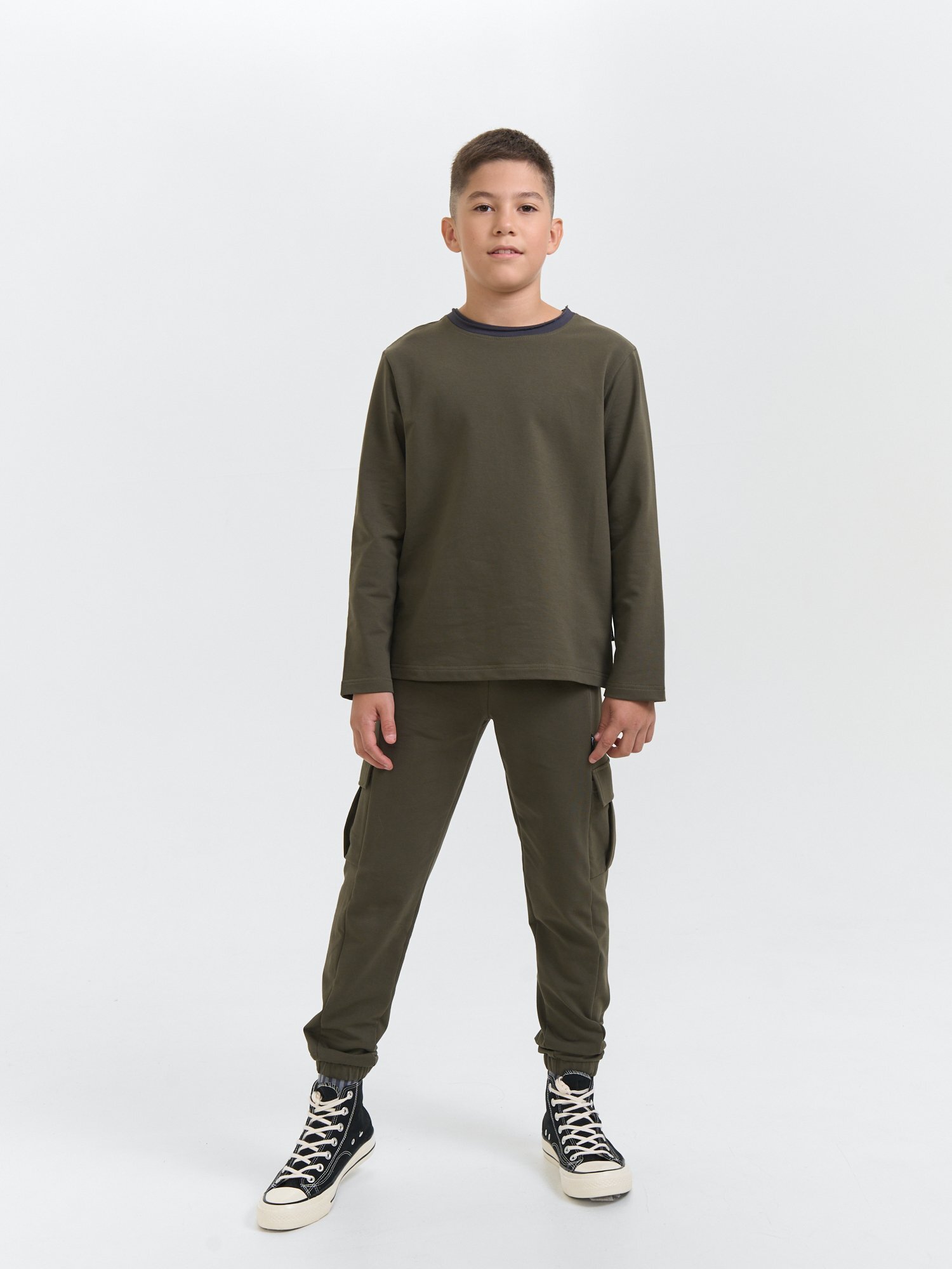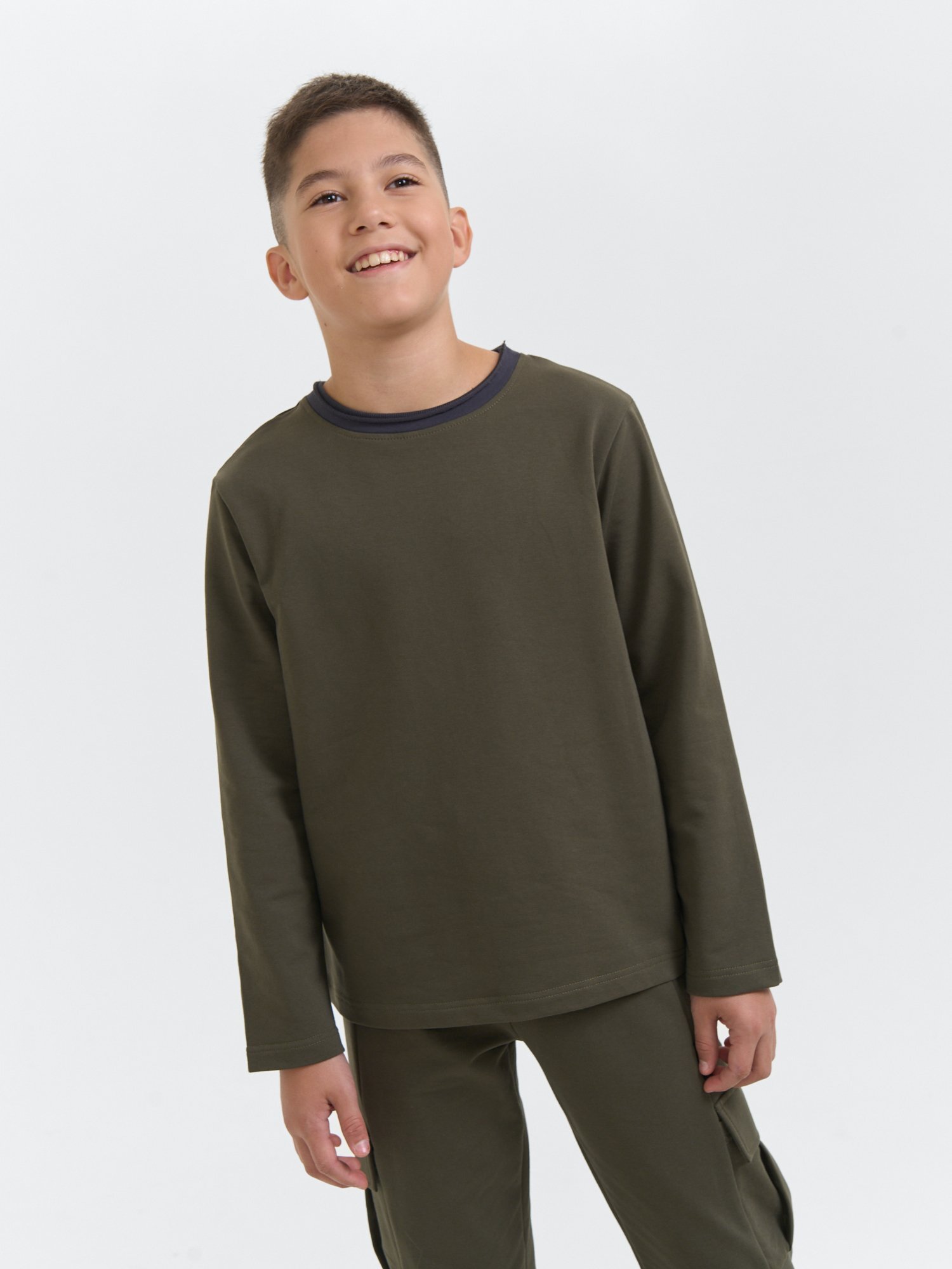 Лонгслив оверсайз "Хаки" с контрастной отделкой 7+