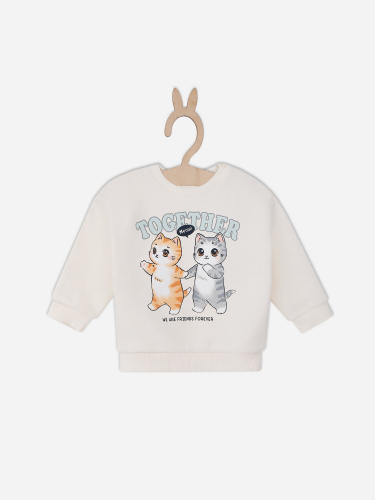 Джемпер свободного силуэта, выполнен из футера с начесом. Спинка и перед цельнокроенные. Рукава втачные, длинные, одношовные. Горловина круглая, окантована бейкой из трикотажной рибаны 2*2 R-6, R22-062.01.360, 96% хлопок; 4% эластан, 230 гр, 165 см. На левом плече застежка книппер 9 мм - 2 шт.
