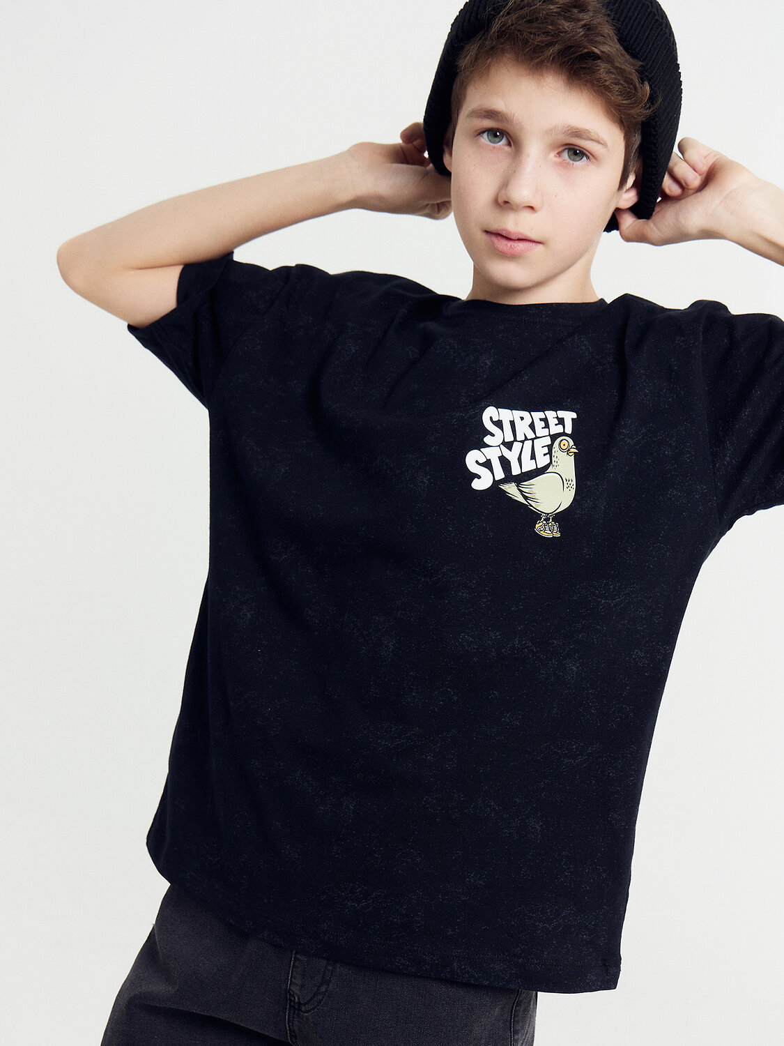 Футболка свободного силуэта из хлопковой трикотажной кулирки. Длина до середины бедер. Рукава короткие. Горловина круглой формы, с обтачкой из рибаны. Спущенная линия плеча дарит особый комфорт. Стильно и удобно!