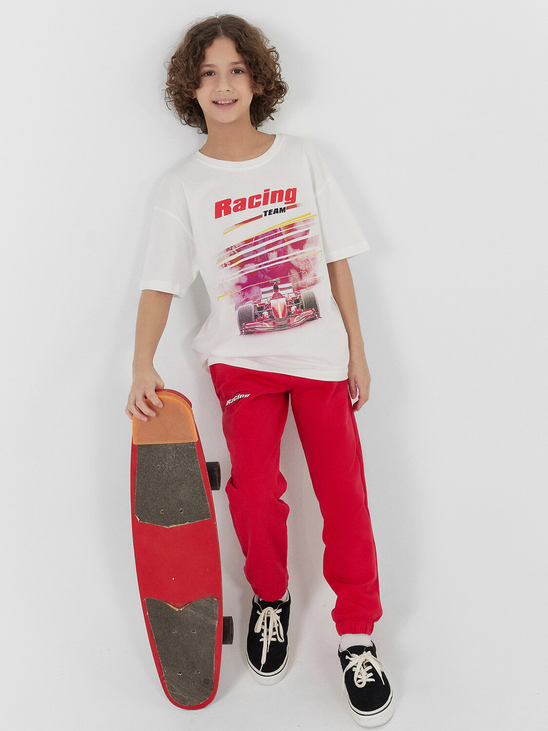 Футболка для мальчиков свободного силуэта, выполненная из хлопковой трикотажной кулирки. Натуральный материал отличается мягкостью и дышащими свойствами, что обеспечивает максимальный комфорт на протяжении всего дня. Модель имеет короткие рукава и круглую горловину, а спущенная линия плеча добавляет особого комфорта и свободу движений. Эта модель идеально подходит для активного отдыха и повседневного ношения, сочетая в себе стиль и удобство.