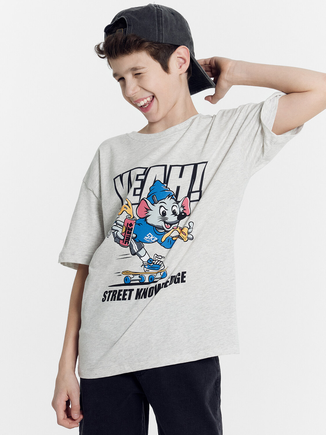 Футболка свободного силуэта из хлопковой трикотажной кулирки. Длина до середины бедер. Рукава короткие. Горловина круглой формы, с обтачкой из рибаны. Спущенная линия плеча дарит особый комфорт. Стильно и удобно!
