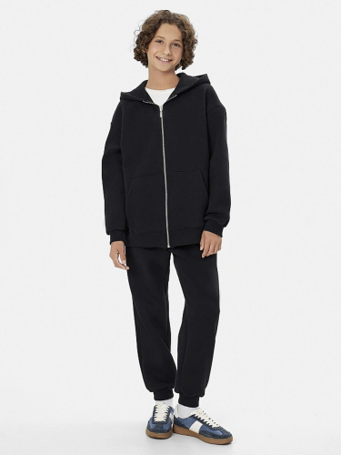 Брюки джоггеры свободные. Пояс отризной с эластичной тесьмой внутри 50RV. С внешней стороны пояса пробиты петли и втянут шнур 8PXC-2. Карманы в боковых швах. По низу отрезные манжеты из рибаны.