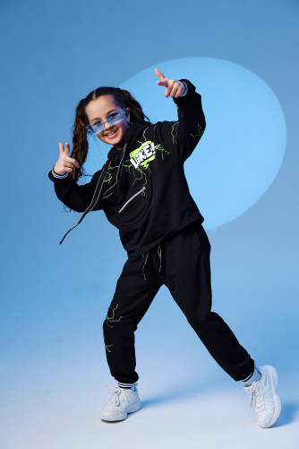 Стильный детский костюм состоит из бомбера и юбки с ярким принтом.