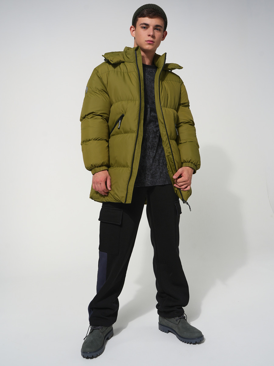 Удлиненная куртка с утеплителем 300г/м2. Вместительные боковые карманы, в которые помещается телефон. Светоотражающие элементы сзади по низу и в виде нашивки на рукаве. Манжет стянут резинкой для сохранения тепла. Комфортный капюшон с возможностью утяжки по краю капюшона.