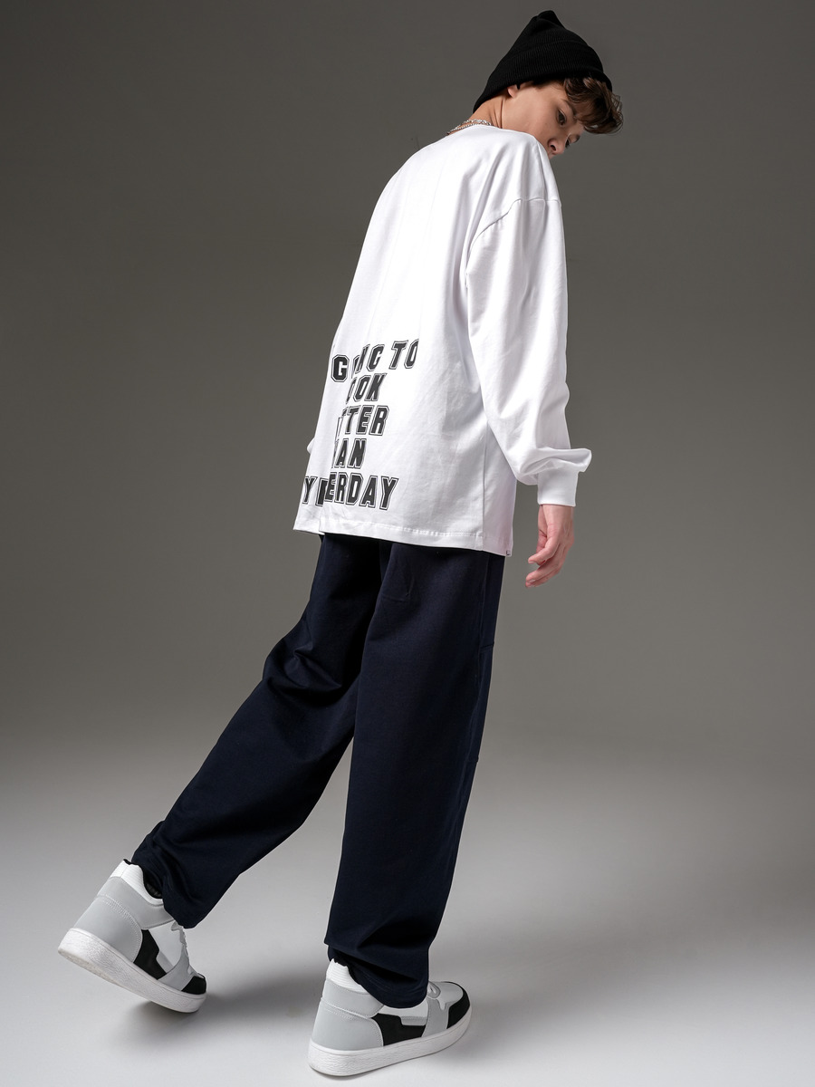Лонгслив для мальчика Оверсайз из премиального качественного хлопкового пенье кулирной глади. Свободный сулуэт, округлая горловина, со спущенным плечом, рукава длинные втачные на манжете. Декор принт на спинке.