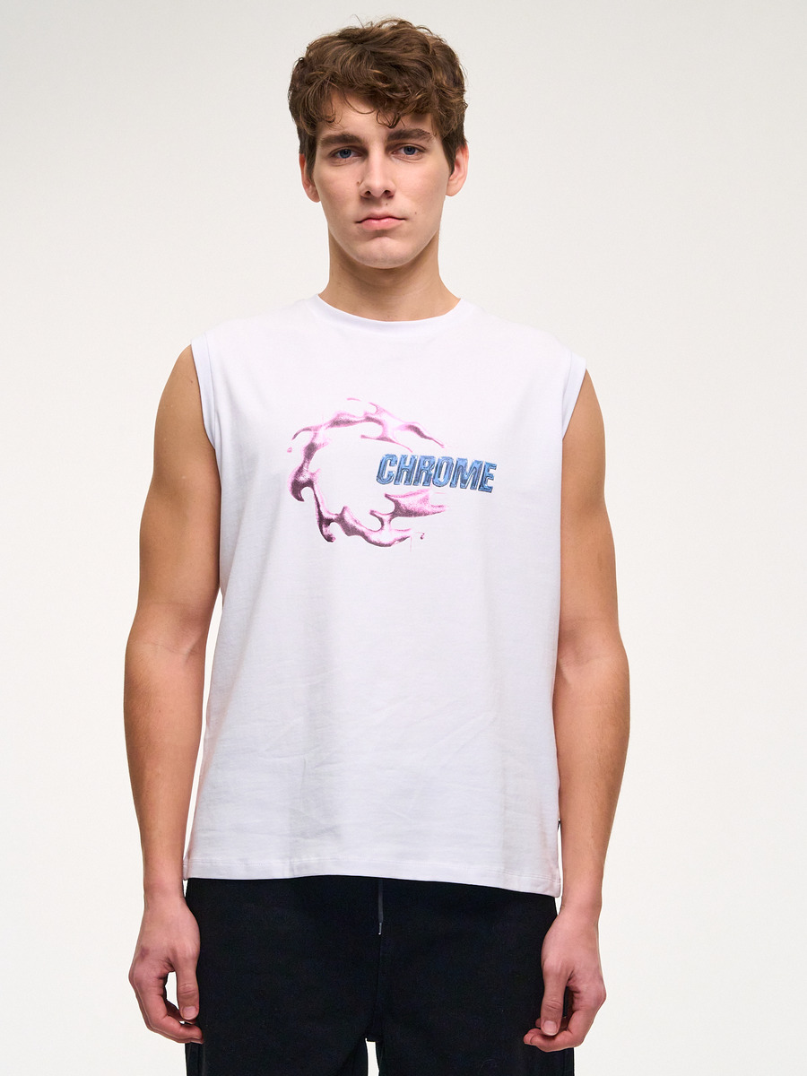 Майка для мальчика оверсайз - незаменимая вещь в летнем гардеробе тинейджера, который следит за последними трендами моды! Базовая футболка выполнена из премиальной хлопковой ткани с добавлением лайкры. Актуальный свободный крой и яркий винтажный принт "хром" выделят Вашего ребенка из толпы и подчеркнет его идентичность!