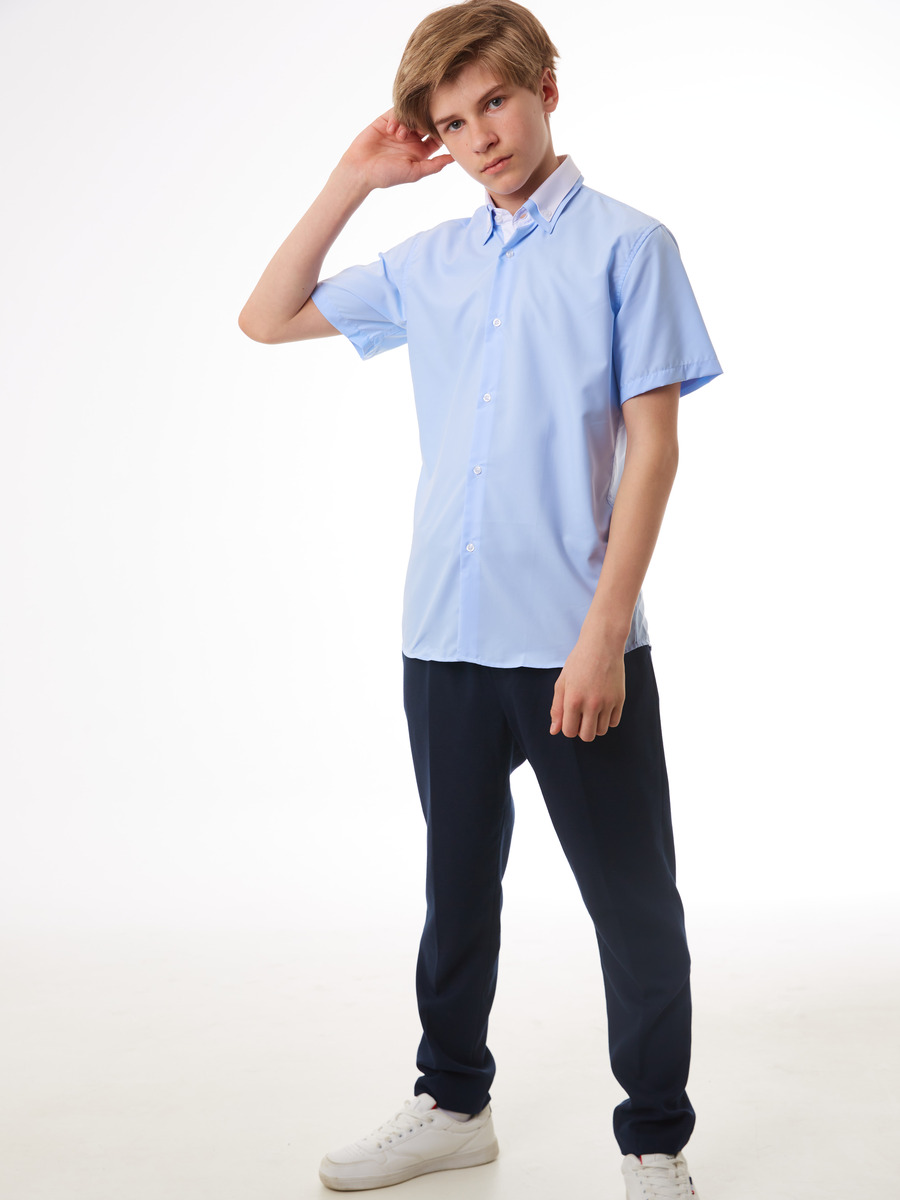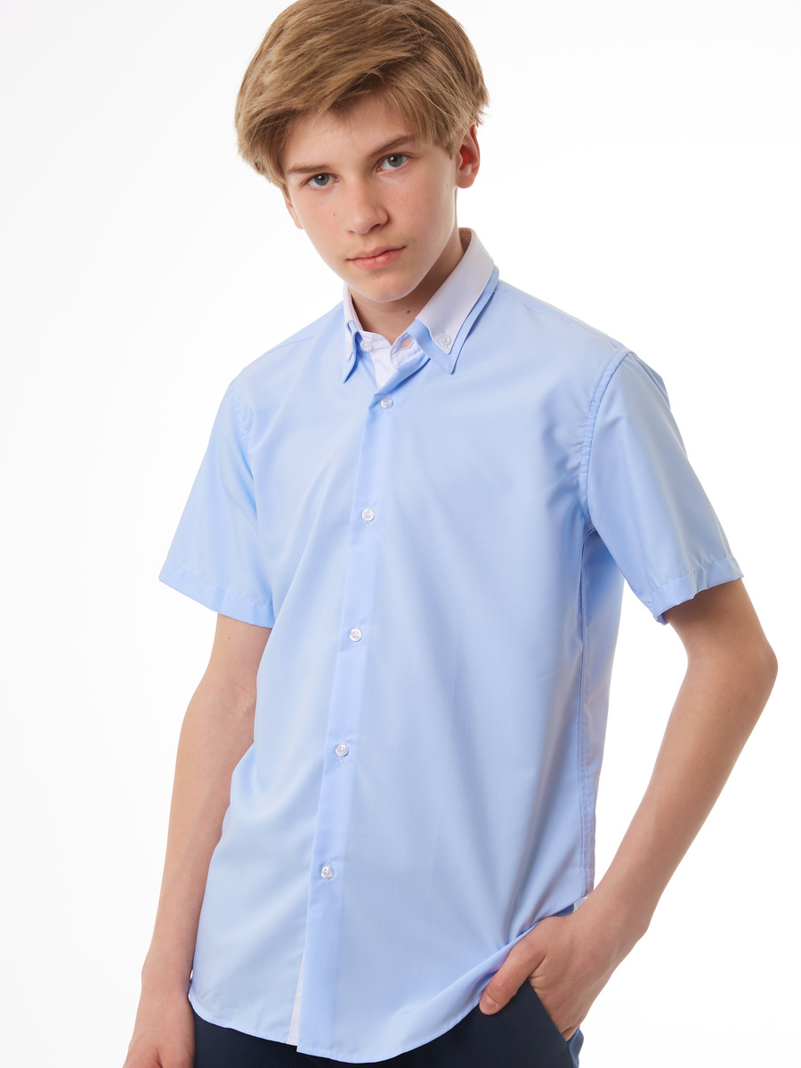 Сорочка хлопковая приталенного силуэта с карманом для мальчика с двойным воротником из текстиля