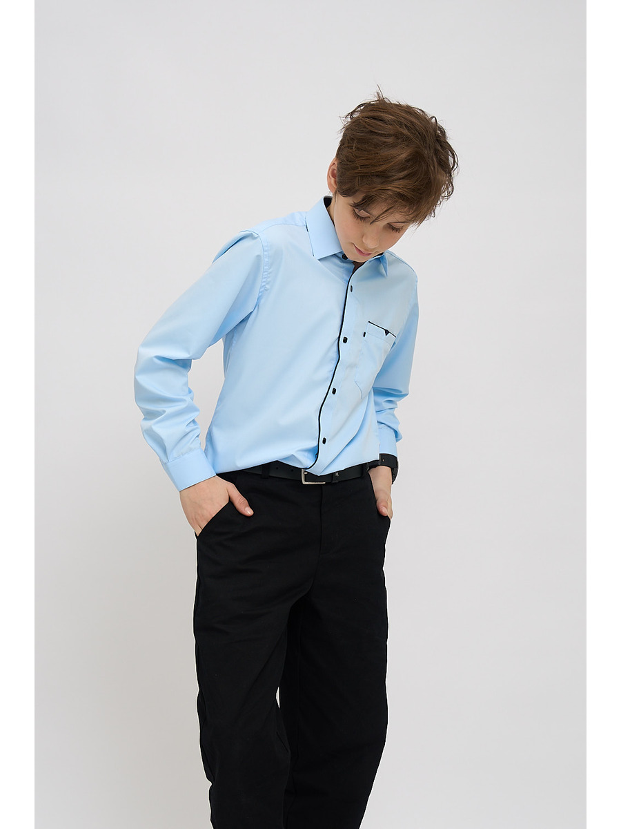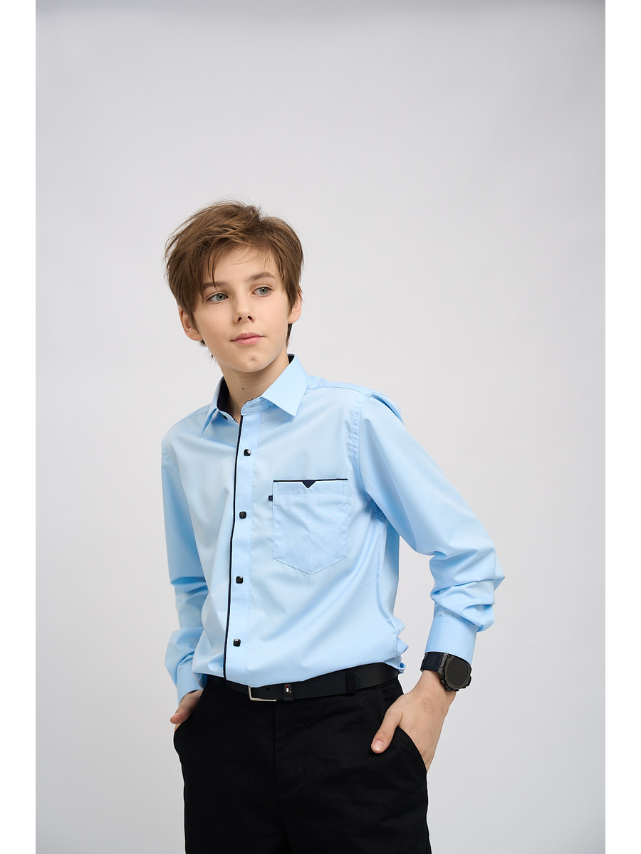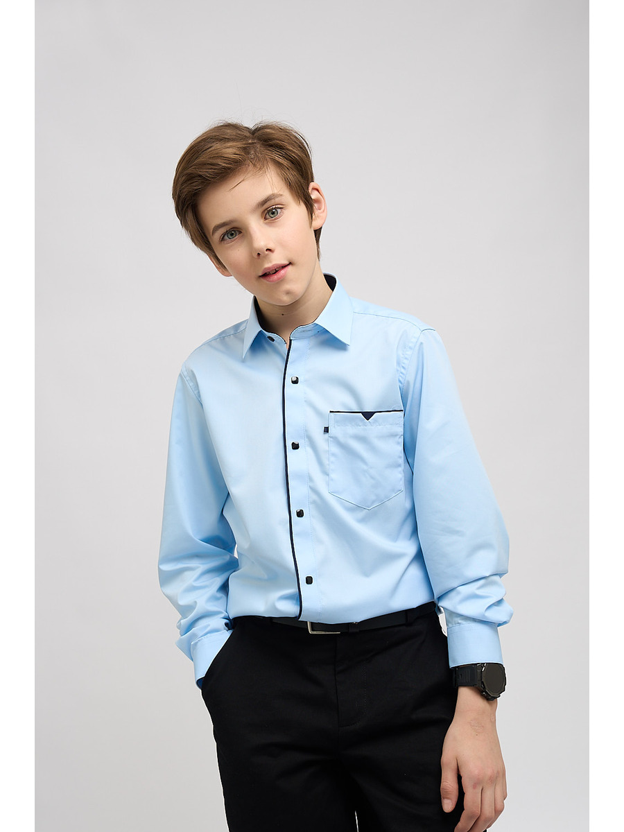 Классическая темно-синяя сорочка на кнопках подойдет в школу, на праздник и на выпускной. Модель полуприлегающего силуэта с длинным рукавом и накладным карманом. Воротник с контрастной внутренней стойкой голубого цвета, карман и край борта украшены контрастным голубым кантом. Сорочка выполнена из качественной ткани с высоким содержанием вискозы, что позволяет вашему ребенку чувствовать себя комфортно. Сорочка идеальна для гардероба как часть школьной формы, она идеально сочетается с классическими брюками. Широкий размерный ряд позволяет подобрать сорочку как для детей школьного возраста, так и для подростков. Стильня сорочка станет незаменимой вещью в гардеробе вашего сына.