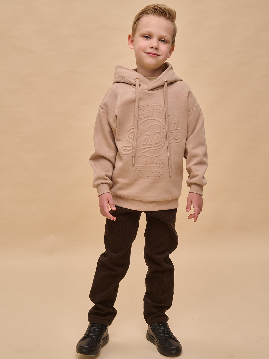 Толстовка детская из футера с начёсом для мальчика. Худи трендового оверсайз-силуэта со спущенным плечом подарит ребёнку комфорт и не будет стеснять его движений. Толстовка с капюшоном защитит от холода и ветра. Модель дополнена манжетами из эластичной рибаны по низу и рукавам. Рибана не растягивается и надолго сохраняет отличный внешний вид. Изделие неприхотливо в уходе. Толстовка на мальчика выполнена из ткани с высоким содержанием хлопка — модель мягкая, воздухопроницаемая и гипоаллергенная. Благодаря полиэстеру худи износостойкое, сохраняет форму даже после множества стирок. Изделие выполнено в универсальной расцветке, без проблем сочетается с любыми брюками, джинсами. Отличное худи оверсайз для мальчиков дошкольного и младшего школьного возраста, а также подростков. Джемпер подходит для детского сада, прогулок, отдыха, дома. Худи с капюшоном для мальчика подходят для круглогодичной носки. Помните о правильном уходе за изделием: рекомендуется стирать при температуре не выше 30 °C, без предварительного замачивания, с изнанки. Это поможет сохранить качество и цвет толстовки на длительное время. Не забывайте о выборе правильного размера. Используйте таблицу размеров на фотографии, чтобы выбрать подходящий вариант для вашего мальчика. Обратите внимание, что цвет товара на экране вашего устройства может отличаться от реального.