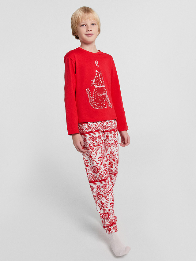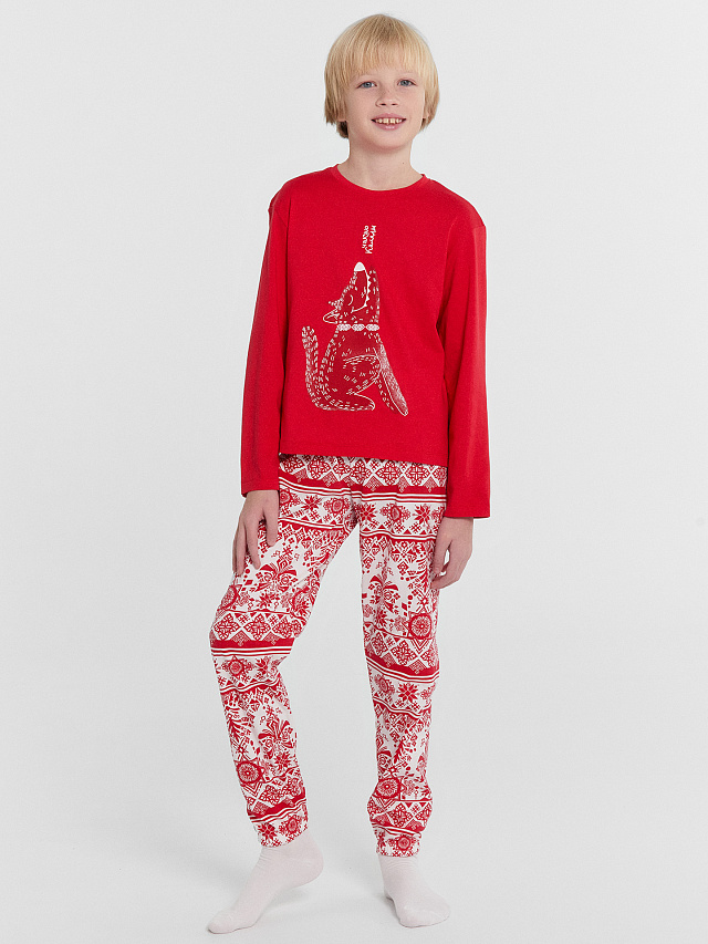 Пижама для мальчиков красная с принтом и надписью "Чакаю Каляды"