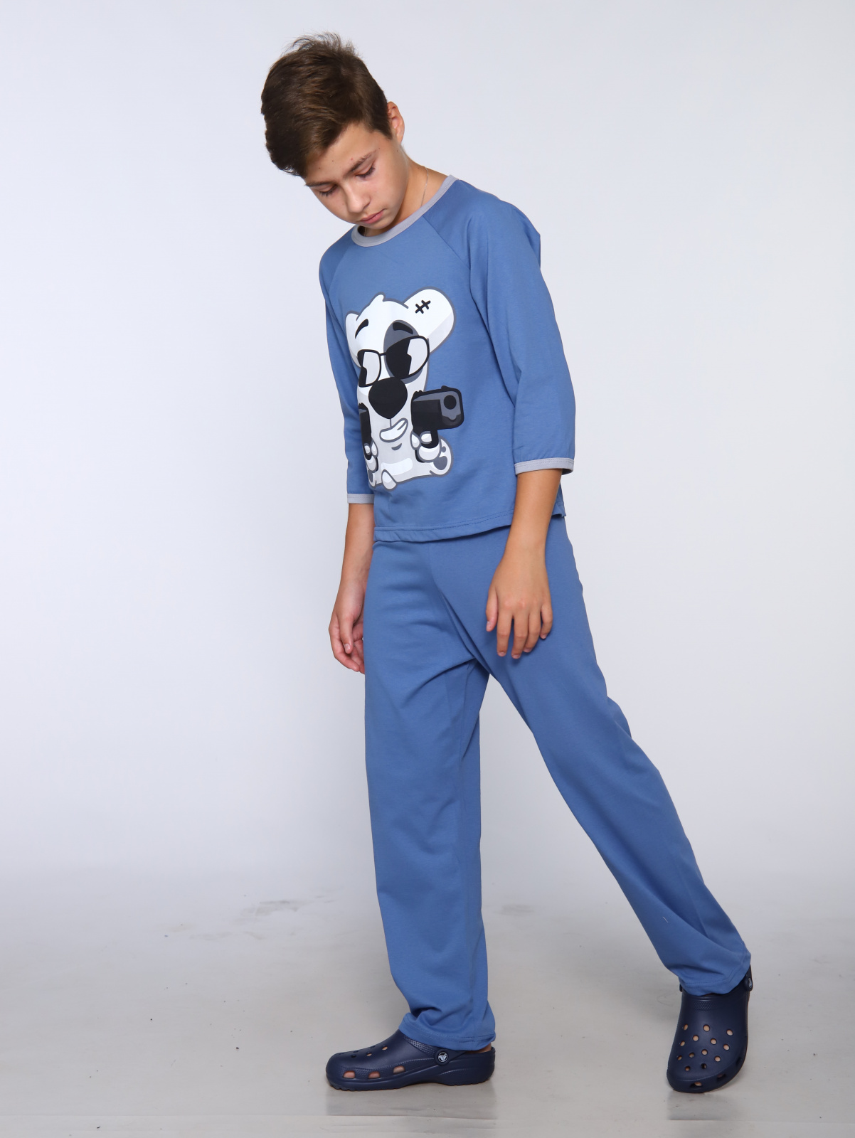 Подростко вая пижама для сна, так же комплек для мальчика мы рекомендуем в качестве домашнего костюма. Детская пижама мягкая, не стесняет движений.