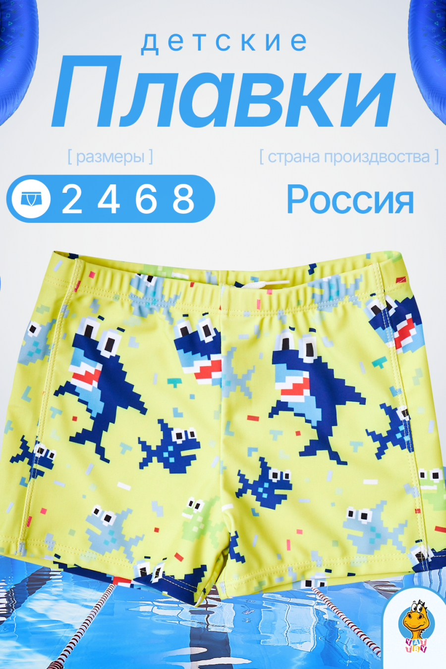 Плавки для мальчика 24-1001 PIXEL SHARK YELLOW, Аксессуары: