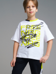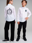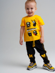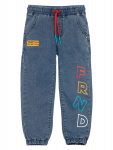Джинсы из эластичного денима. Посадка comfort fit – свободный крой брючин. Карманы в боковых швах. Эластичный пояс с тесьмой позволяет легко надевать джинсы и утягивать до идеальной посадки в зависимости от комплекции ребенка. Эластичные манжеты.