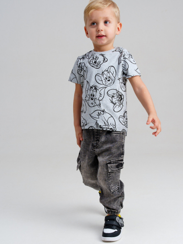Джинсы детские для мальчика. JOGGER FIT - спортивный крой. Средняя посадка. Джинсы на резинке со шнурком. 5 карманов. Накладные декоративные детали и лямка. Модель выполнена из качественного и плотного текстиля.
