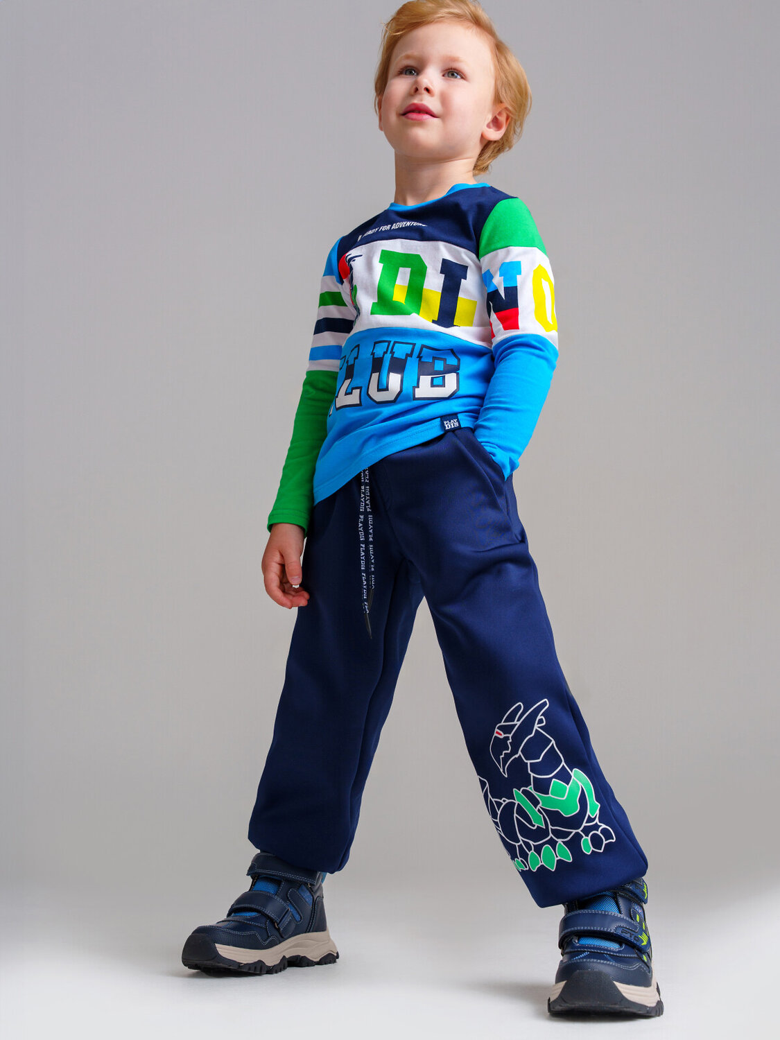 Брюки Softshell детские для мальчика. Штаны на резинке со шнурком. Боковые карманы. Модель из капсульной коллекции DINO CLUB (ДИНО КЛАБ). Соберите полный образ в едином стиле!