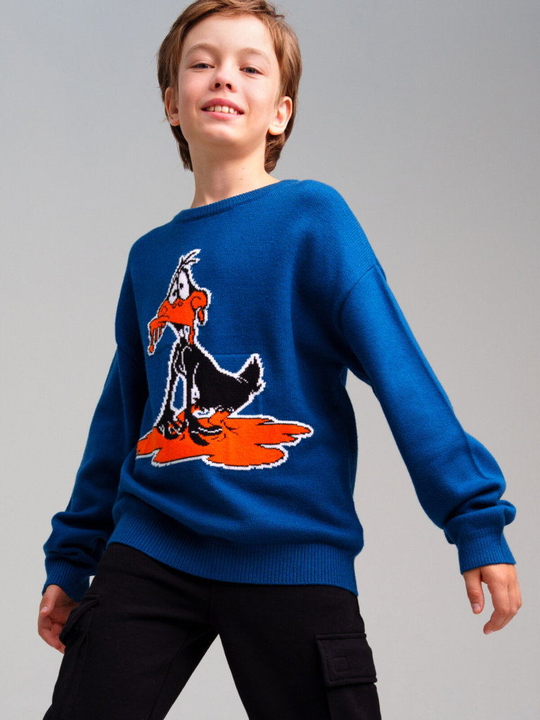Джемпер для мальчика подростка. Джемпер из вязаного трикотажа с высоким содержанием вискозы. Модель из капсульной коллекции DIGITAL TRANSFORM (ДИДЖИТАЛ ТРАНСФОРМ). Соберите полный образ в едином стиле!