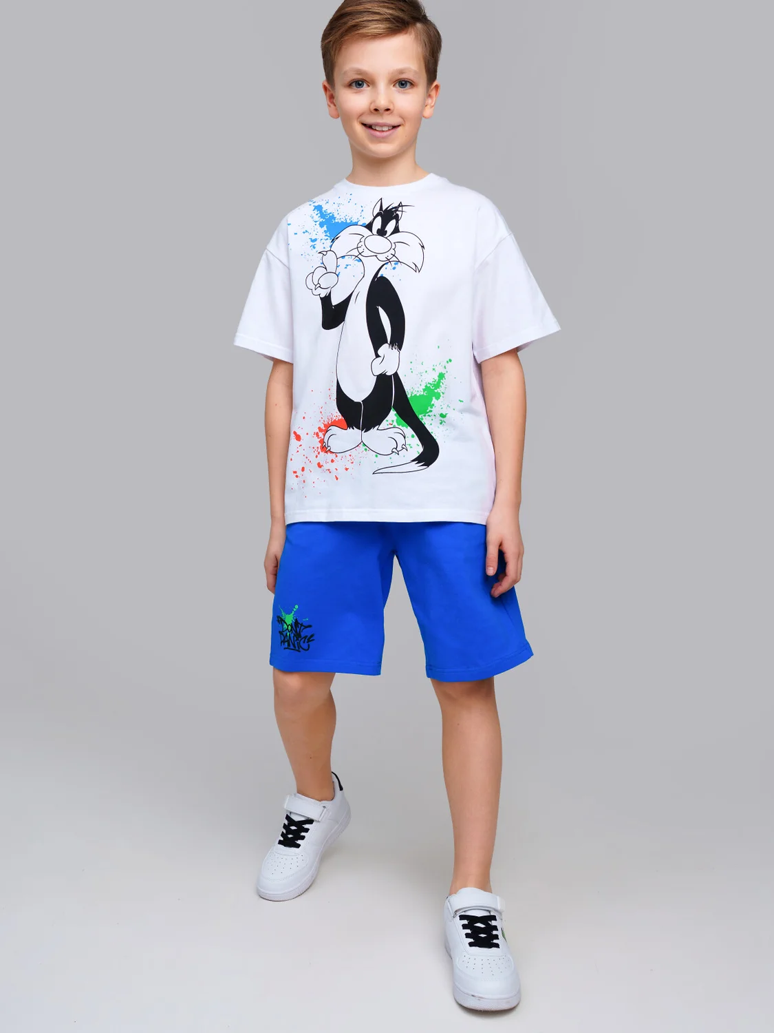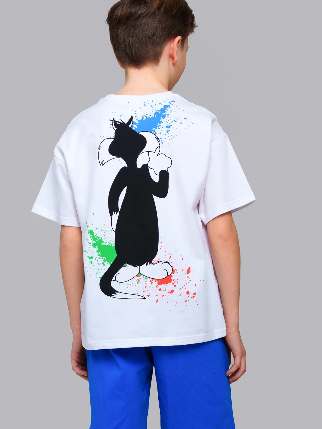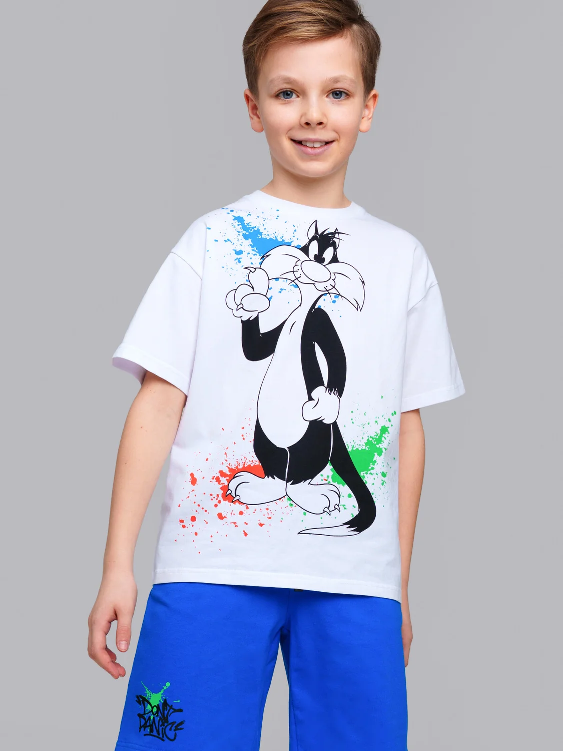 Футболка оверсайз для мальчика подростка. Высокое содержание хлопка. Благодаря наличию эластана в составе ткани изделие держит форму и меньше мнется. Модель выполнена из качественного и приятного на ощупь трикотажа.