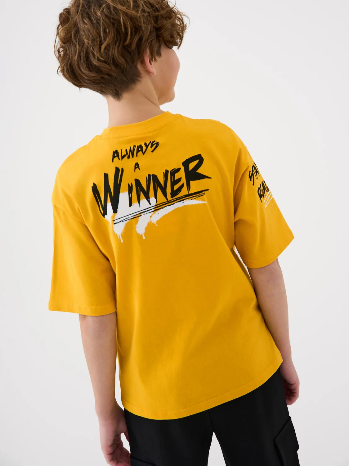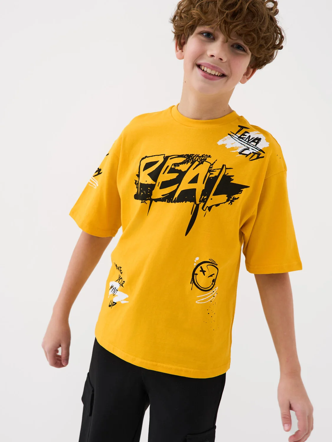 Футболка оверсайз для мальчика подростка. Модель выполнена из эластичного хлопкового трикотажа джерси. Спереди и по спинке расположен крупный принт в стиле граффити. Горловина круглая, обработана эластичным рибом.