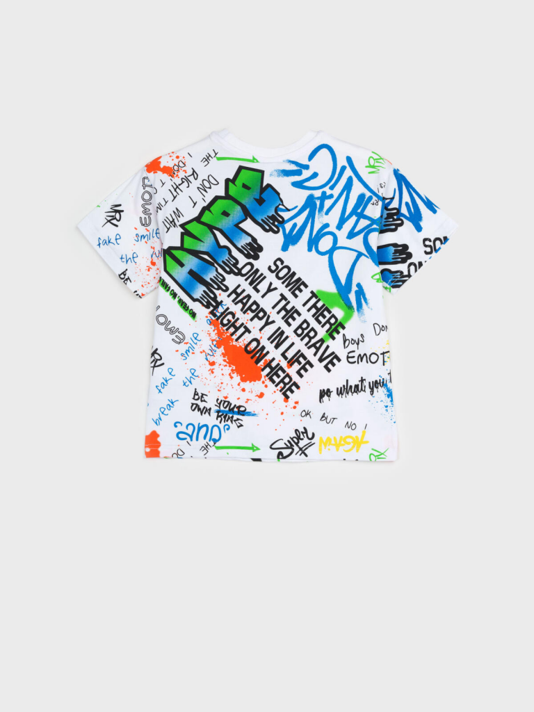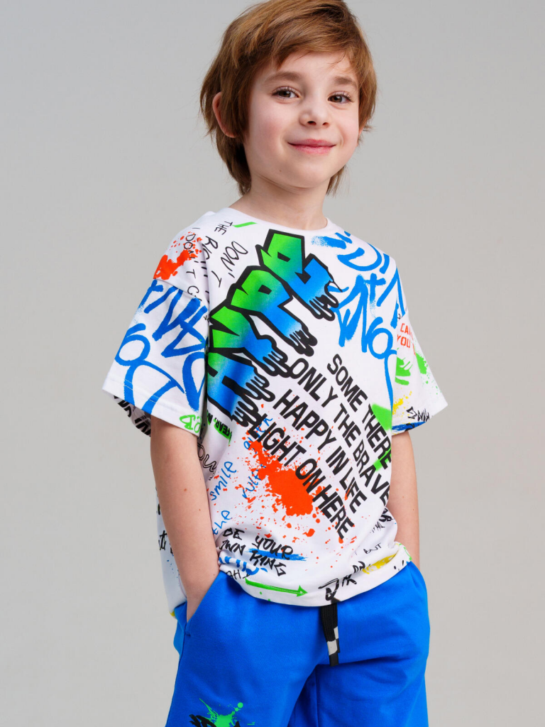 Футболка детская для мальчика. Высокое содержание хлопка. Благодаря наличию эластана в составе ткани изделие держит форму и меньше мнется. Модель выполнена из качественного и приятного на ощупь трикотажа.