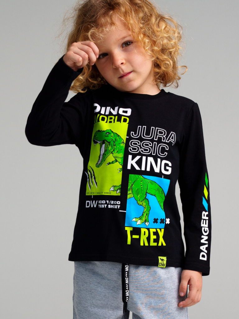Фуфайка трикотажная для мальчиков (футболка с длинными рукавами) черный,разноцветный 32312103