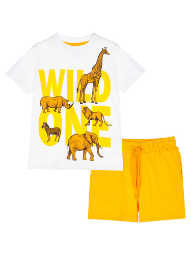 Комплект: футболка и шорты из качественного эластичного и приятного на ощупь трикотажа. Футболка выполнена из трикотажа разных цветов. Шорты с карманами в боковых швах. Эластичный пояс со шнурком. Посадка regular fit – классический крой. Высокое содержание хлопка 95%. Благодаря наличию эластана в составе ткани изделие держит форму и меньше мнется.
