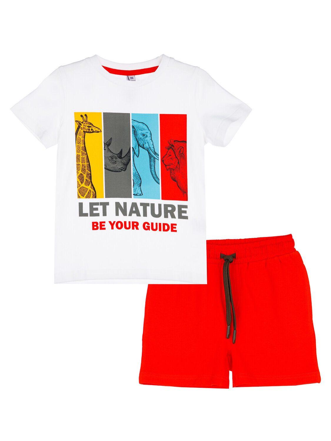 Комплект: футболка и шорты из качественного, эластичного и приятного на ощупь трикотажа. Футболка выполнена из трикотажа разных цветов. Шорты с карманами в боковых швах. Эластичный пояс со шнурком. Посадка regular fit – классический крой. Высокое содержание хлопка 95%. Благодаря наличию эластана в составе ткани изделие держит форму и меньше мнется.