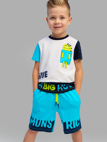 Костюм детский для мальчика. Комплект: футболка, шорты с высоким содержанием хлопка 95%. Благодаря наличию эластана в составе ткани изделие проще в уходе и держит форму. Штаны на резинке со шнурком. Боковые карманы.