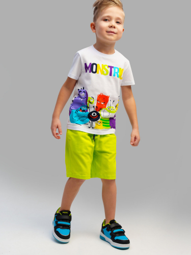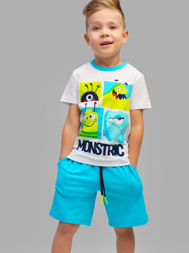 Костюм детский для мальчика. Комплект: футболка, шорты с высоким содержанием хлопка 95%. Благодаря наличию эластана в составе ткани изделие проще в уходе и держит форму. Шорты на резинке со шнурком. Боковые карманы.