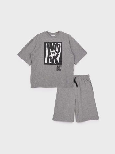 Костюм для мальчика подростка. Комплект оверсайз: футболка, шорты с высоким содержанием хлопка 95%. Благодаря наличию эластана в составе ткани изделие проще в уходе и держит форму. Шорты на резинке со шнурком. Боковые карманы.