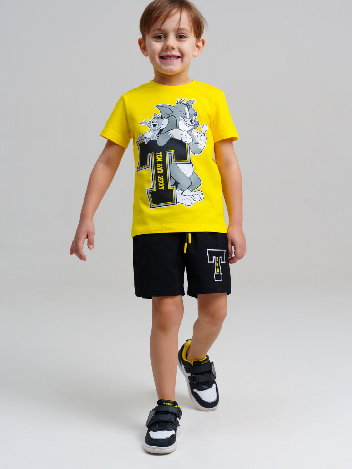 Костюм детский для мальчика. Комплект: футболка, шорты с высоким содержанием хлопка 95%. Благодаря наличию эластана в составе ткани изделие проще в уходе и держит форму. Шорты на резинке со шнурком. Боковые карманы.