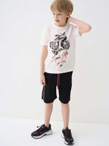 Комплект трикотажный из футболки и шорт для мальчика подростка. Костюм подходит для повседневной носки в летний сезон. Выполнен из мягкого и эластичного трикотажа с высоким содержанием хлопка. Посадка футболки — oversize, что придаёт образу актуальный расслабленный стиль. Шорты средней длины с комфортной посадкой на резинке со шнурком. Боковые карманы.