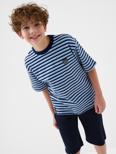 Костюм для мальчика подростка. Состоит из футболки и шорт. Выполнен из хлопкового трикотажа. Футболка оверсайз, с коротким рукавом. Красочный принт в тематике Санкт-Петербурга. Шорты свободные, с эластичным поясом и шнурком для регулировки посадки. Удобные боковые карманы.