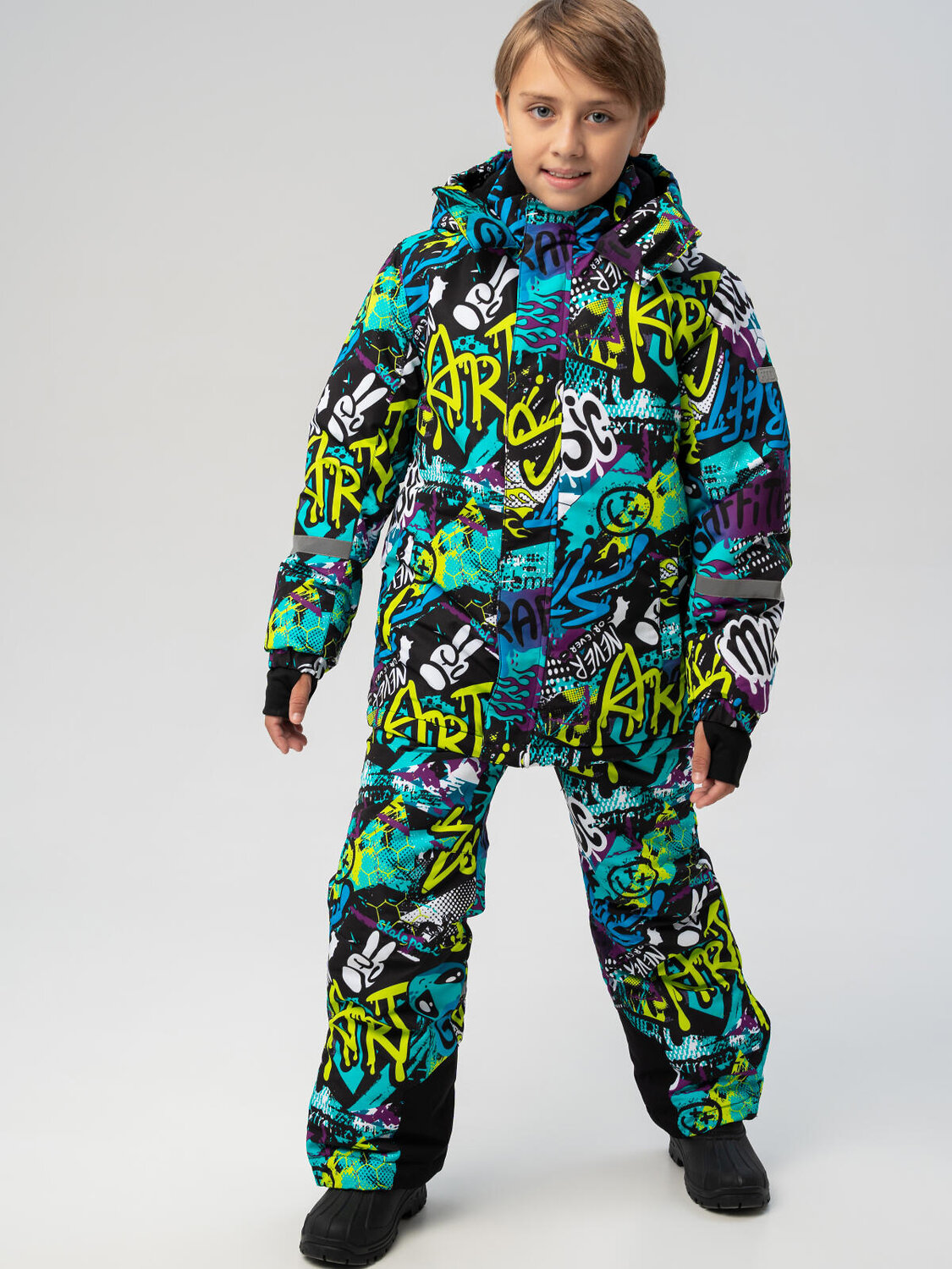 Сочетайте комплект с теплыми варежками, шапкой и удобной зимней обувью. Дополните образ ярким шарфом, чтобы создать веселый и практичный зимний лук.
